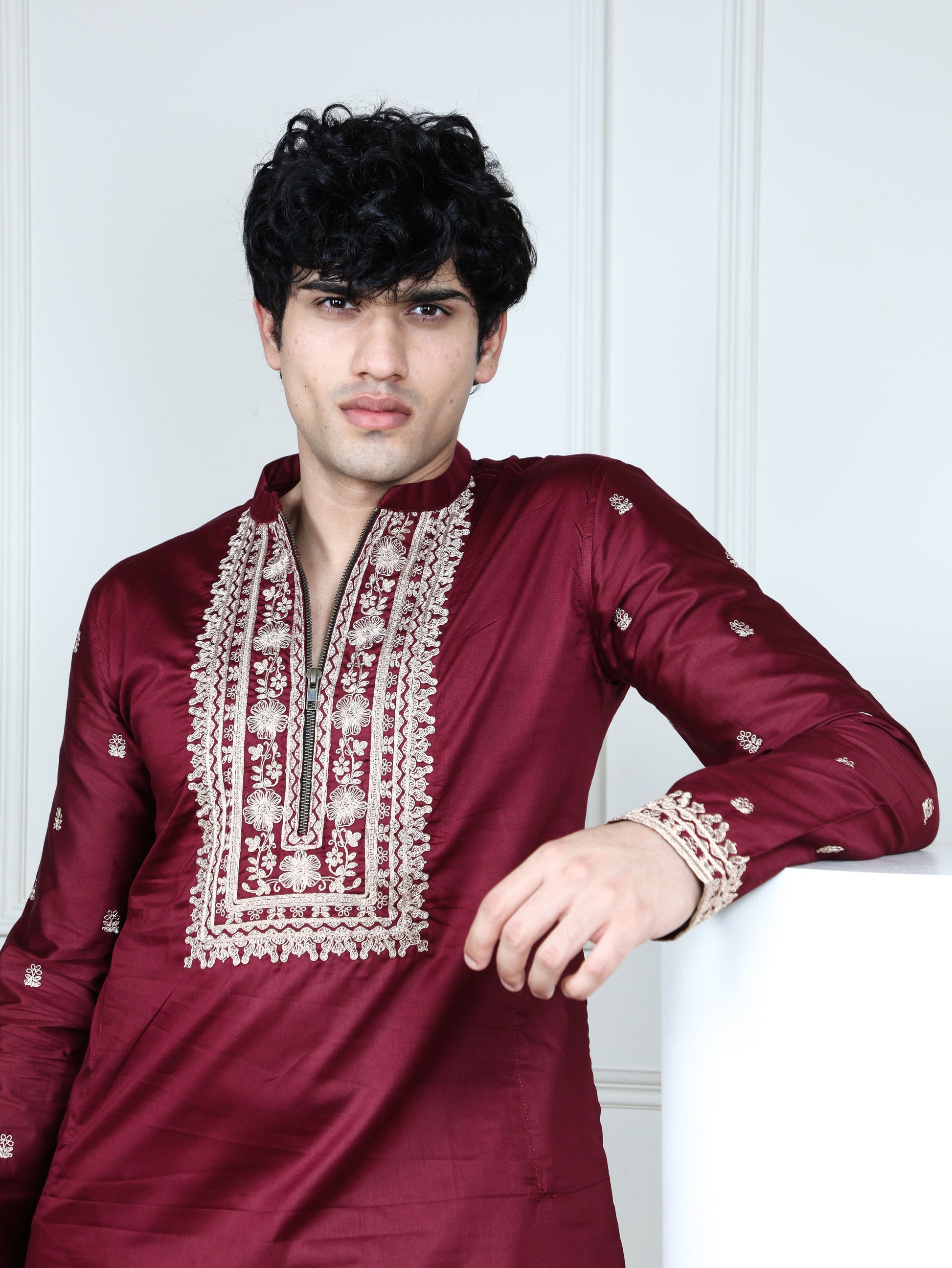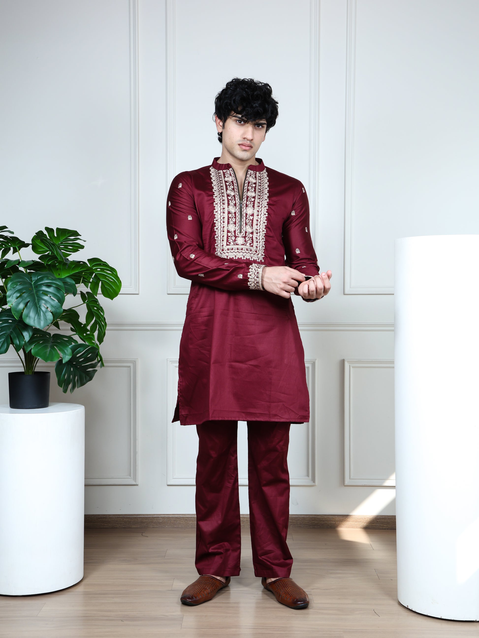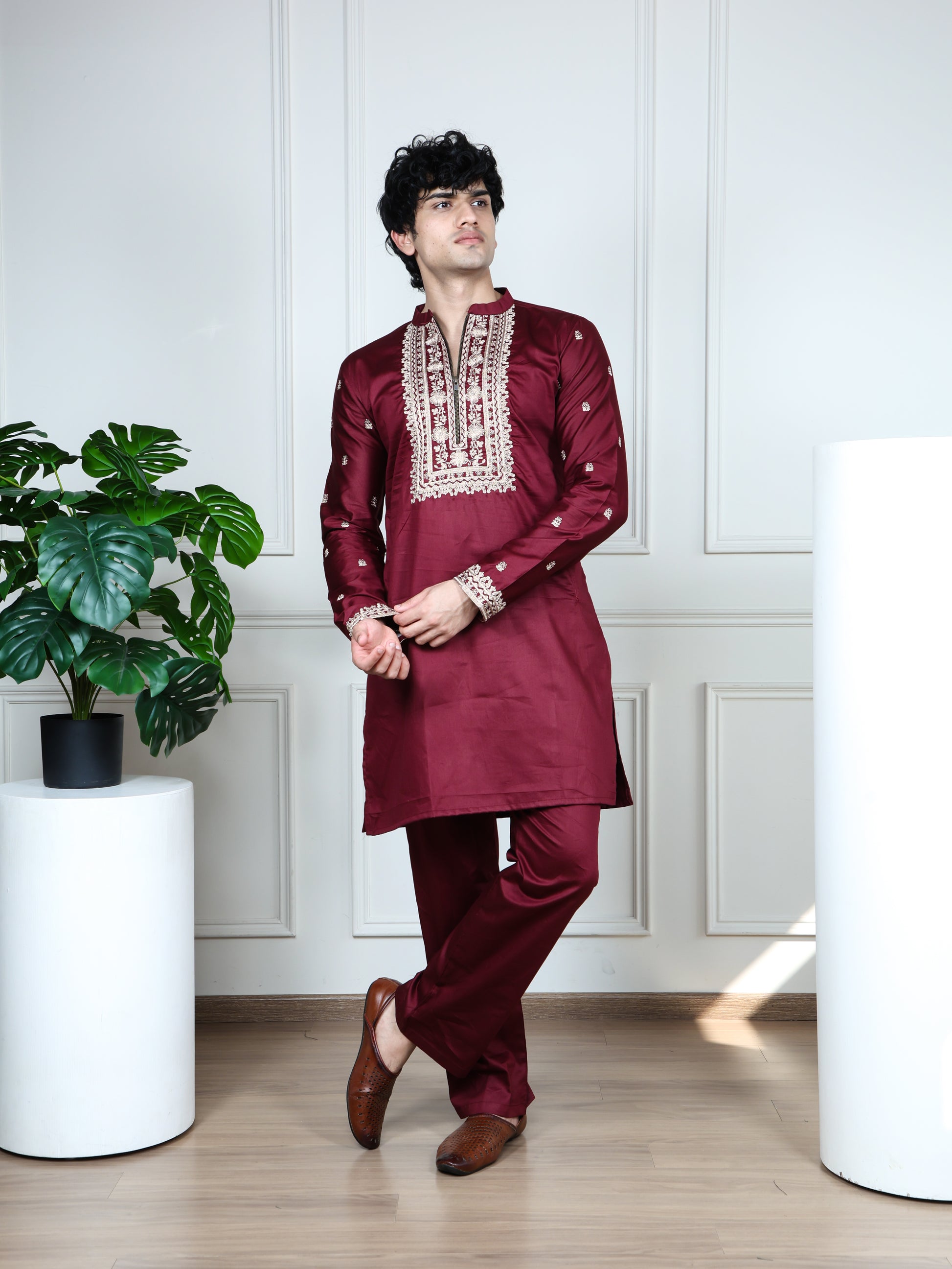 Regal Heritage Embroidered Kurta and Pant Set-Maroon