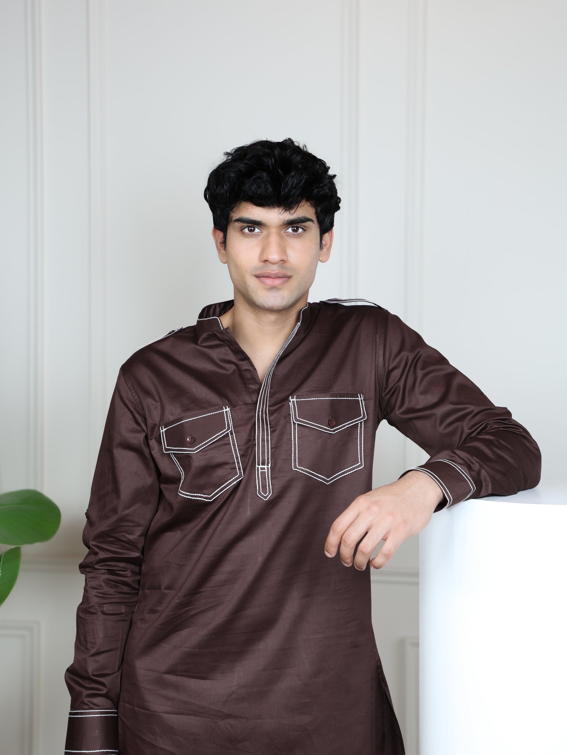 Urban Heritage Kurta & Straight Pant Set-Brown